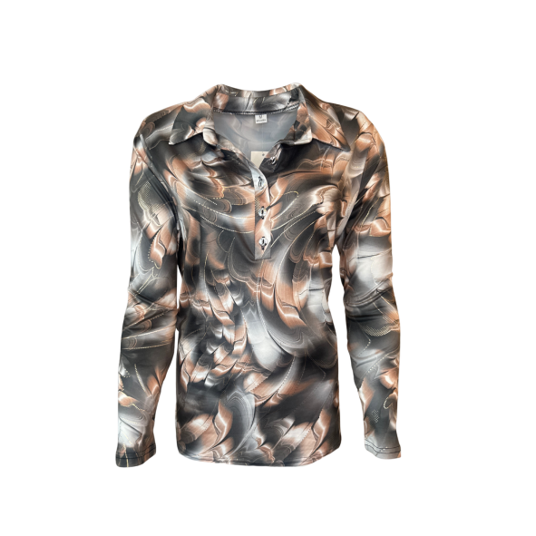 Stralend feestelijk poloshirt met lange mouwen, elegante kraag met knopen en subtiele sparkling-details. Gemaakt van zachte, luchtige viscosemix. Ruglengte ca. 66 cm. Verkrijgbaar in M t/m 3XL – ideaal voor kerst en oud & nieuw.