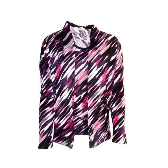 De Sensia Twinset Chantely in paars combineert stijl en comfort. Het vest met lange mouwen en subtiele elastische zoom sluit perfect aan, terwijl het bijpassende shirt soepel valt. Beide stukken zijn gemaakt van zachte winterse jersey kwaliteit en bieden een behaaglijk draagcomfort voor elke winterdag.